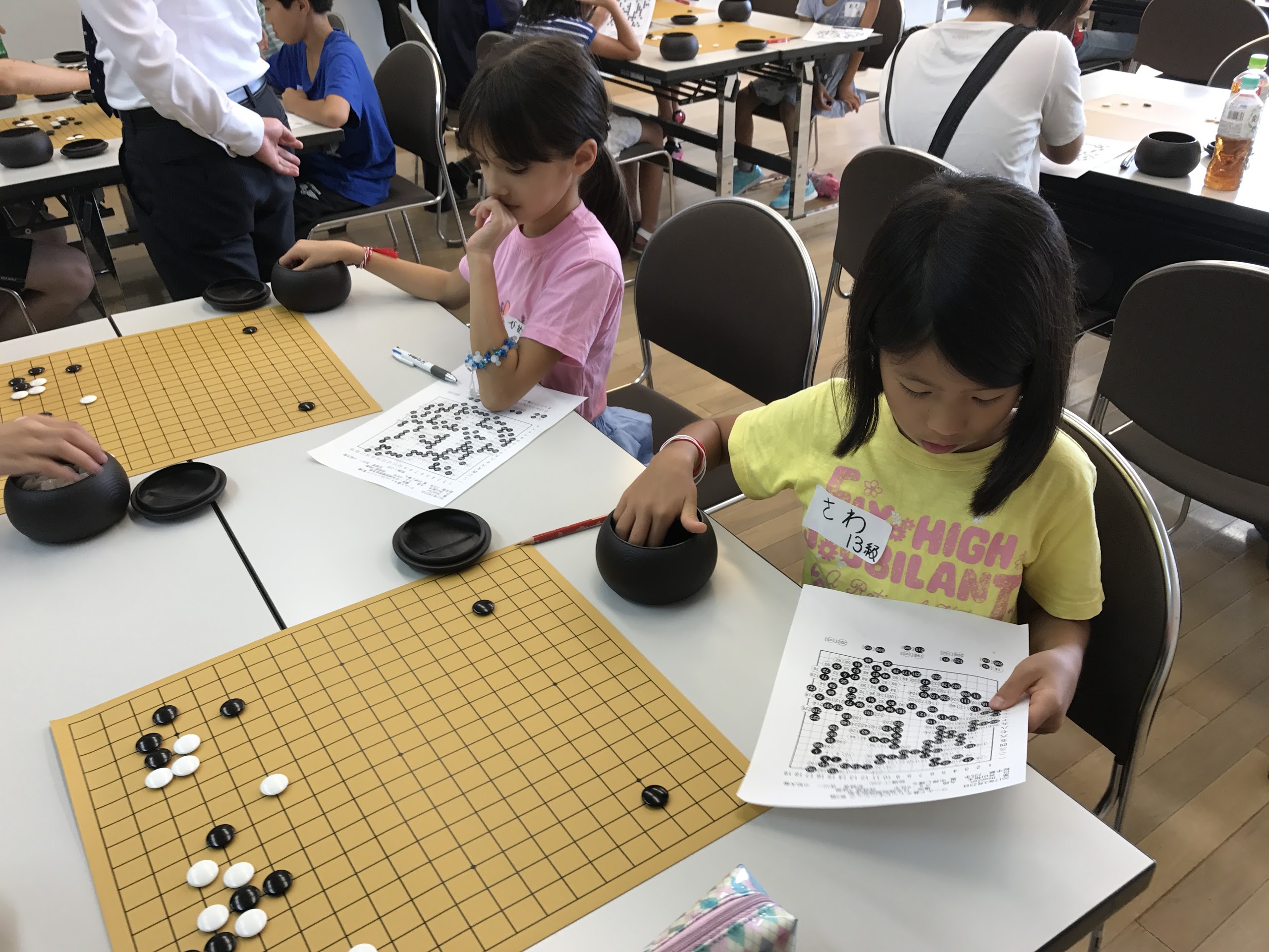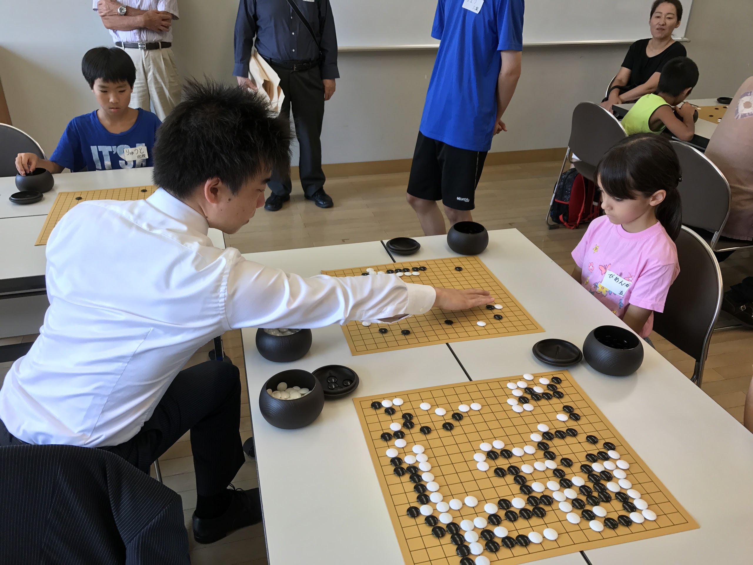 夏休み囲碁キッズ交流会@宮崎へ参加しました 2017年9月10日 最終更新日時 : 2017年9月10日 パパタロ 8月20日(日)に宮崎市清武町にある清武文化会館で行われた、夏休み囲碁キッズ交流会へ参加しました。 囲碁キッズの6名が参加 当教室より、囲碁キッズ6名と、補助指導員として福田先生が参加されました。 囲碁キッズのためだけの指導碁 当日はプロの先生を囲碁キッズが独占!四面打ちの子どもたちは真剣な顔で先生と一局を打ちました。先生に勝つつもりで打っていった子どもたちは、ことごとく返り討ちになりました。それでも子どもたちは、それぞれ得るところがあったのか、満足した顔をしていました。